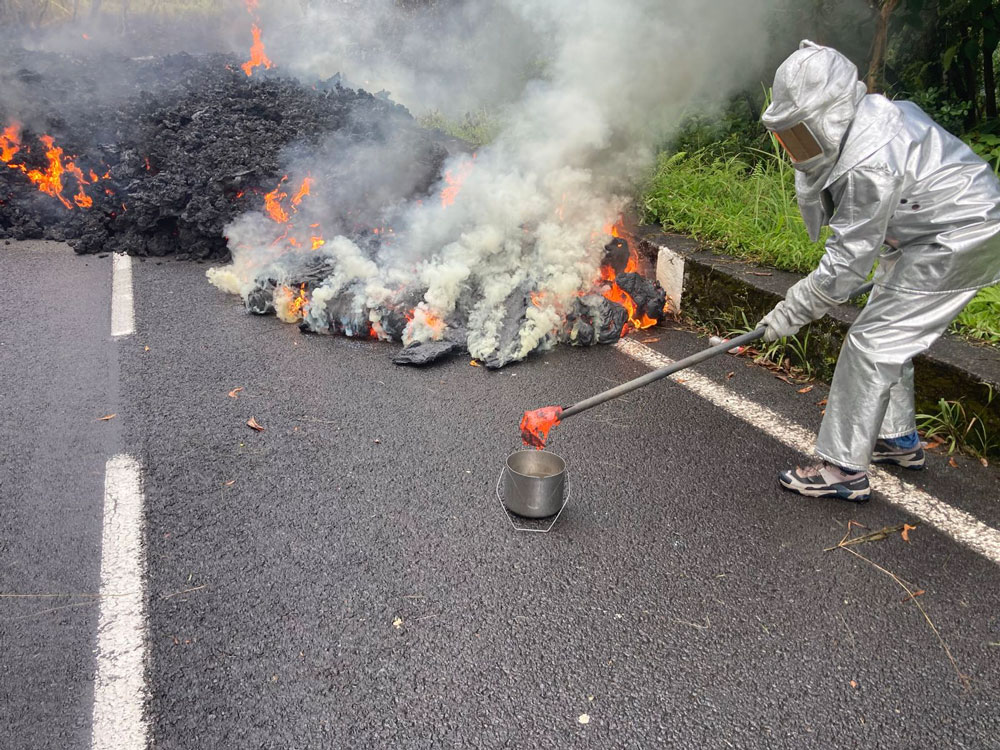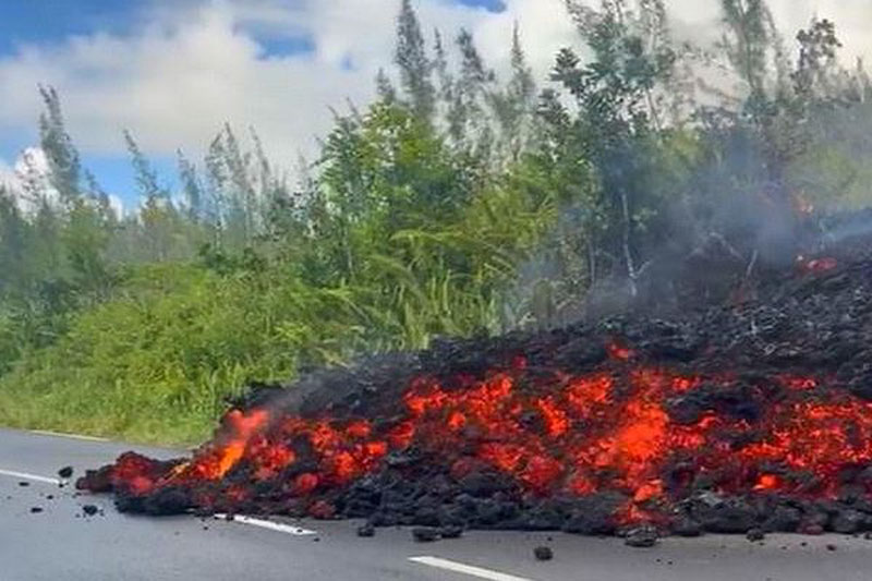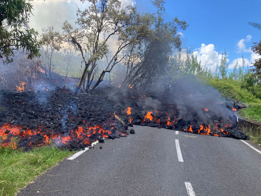 Ce dimanche 15 mars, au matin, la coulée était toujours figée à environ 150 mètres de l’océan. Des bras secondaires sont observés en amont de la route.